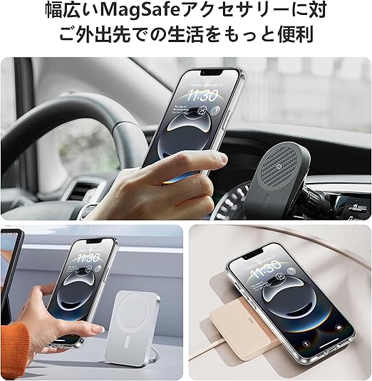 【より強力な磁気吸着】強力なマグネット技術によりワイヤレス急速充電体験が実現し、あいふぉん16eの充電効率が大幅に向上しました。最新磁石技術により、超強力な吸着力で、どんなに振っても落ちず、充電しながらスマホを遊んでも