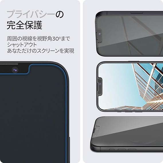 Spigen iPhone 16e 覗き見防止 ガラスフィルム iPhone 14/13/13 Pro 対応 貼り付けキット付き 9H強化ガラス 2枚入 ナノコーティング 飛散防止 AGL03388 a