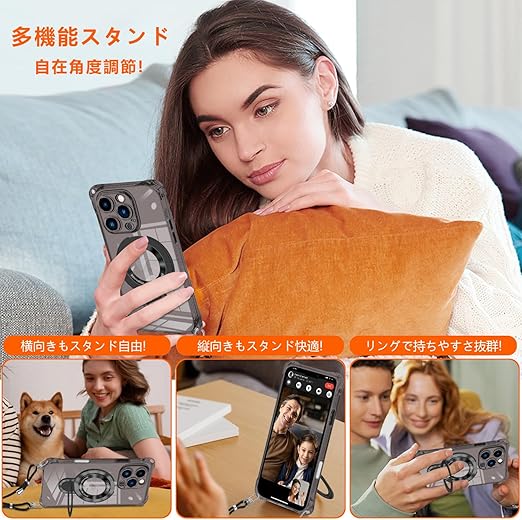iPhone 16e/iPhone SE4 ケース クリア MagSafe対応 リング付き ネック ショルダー アイフォン 16e/se4 縄掛けケース 透明 肩掛け 斜めかけ 韓国 可愛い 縄掛け カバー 丸型スタンド付き マグネット搭載 縦横両対応 耐衝撃 ワイヤレス充電 ストラップホール付き あいほん 16E /SE4 スマホケース a