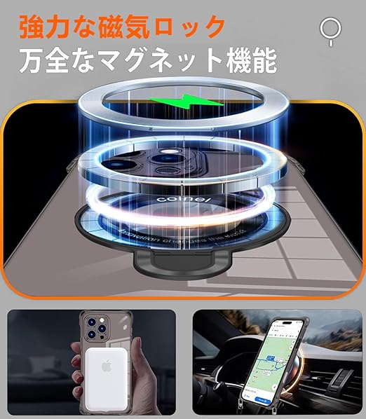 【Magsafeなら強力な磁力 】iPhoneSE4/iPhone16E 用ケースの内部に 配列永久磁石を内蔵したことで、吸着力を高めて、安定感をアップしてエネ損失なしの快速ワイヤレス充電できる。MagSafe車載ホルダーでの使用時もとても安心感溢れ、様々なMagSafe用のアクセサリーと相性バッチリ!