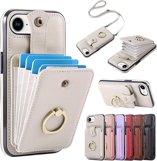 KW-LINK iphone 16e ケース 手帳型 iPhone16e ケース ショルダー リング付き カード収納 いPhone16eケースおしゃれ 背面カバー 財布型 アイフォン16e スマホケース 肩掛け 斜め掛けストラップ付き スタンド機能 マグネット式 iphone16e ケースカバー 可愛い 女性向け アイホン16e カバー 6.1インチ(ベージュ) a