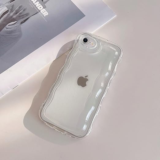 QLTYPRI iPhone 16e 用 ケース クリア TPUカバー ウェーブ 韓国 可愛い アクスタ収納 透明 薄型 軽量 耐衝撃 スマホケース ワイヤレス充電対応 ストラップホール付き アイフォン16e ケース 6.1インチ 対応 a