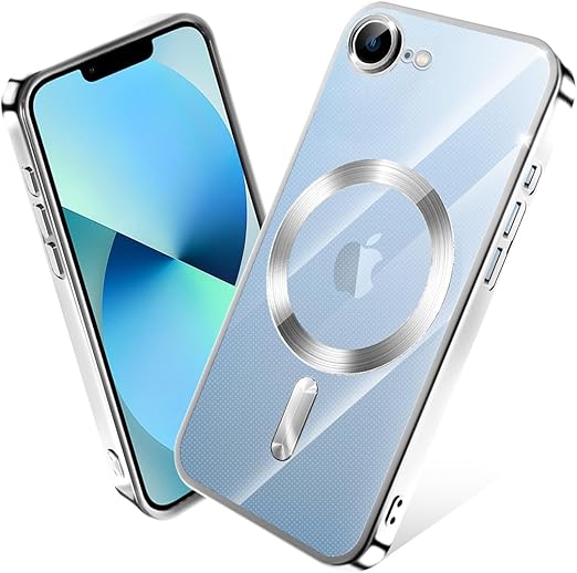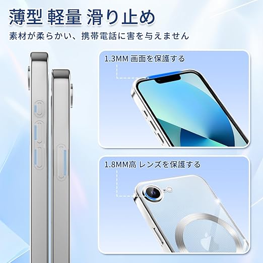 iPhone 16e ケース MagSafe対応 クリア メッキ加工 アイフォン 16e スマホケース 耐衝撃 TPU ワイヤレス充電対応 いpほね 16e カバー ストラップホール付き 薄型 透明 超軽量 黄ばみにくい 柔軟 滑り止め (シルバー) a