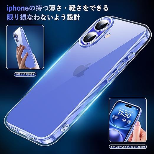 iPhone16 ケース クリア 耐衝撃 ガラスフィルム付き アイフォン16ケース 米軍MIL規格 耐久性 黄ばみ防止 アイホン16 スマホケース ワイヤレス充電対応 あいほん16 スマホケース SGS認証 あいふぉん16 カバー 6.1インチ 透明 ストラップホール付き gogorelax a