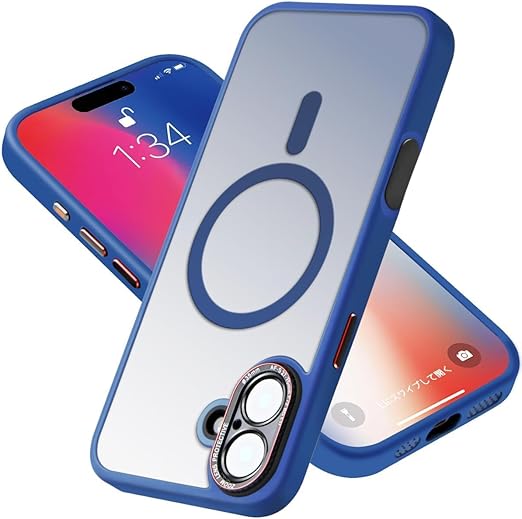 SKILIWAH iPhone 16 Plus ケース magsafe 対応 耐衝撃 黄変防止 薄型 レンズ保護 iPhone16 Plus用 指紋防止 傷に強い 米軍MIL規格 PC背面 半透明 マット 全面保護 ワイヤレス対応 マグネット ケース (ブルー) a