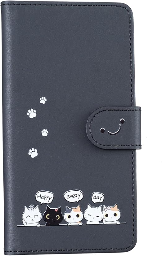 case for iPhone 16 ケース アイフォン16 カバー 手帳型 かわいい猫 笑顔(NENGks ) マグネット式磁気 全面保護 スタンド機能付き カード収納 財布型 (A1-ブラック 黒, に適用するiPhone16) a