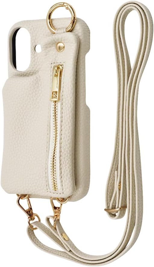 イングレム iPhone 16 (2024年発売モデル) ケース m1n1 ミニ ショルダー ネック ストラップ ポーチ付き オープンレザーケース アイボリー アイフォン16 スマホケース スマートフォンケース IS-P46OLC2/I a