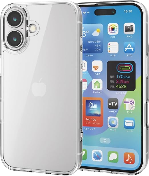 エレコム iPhone 16 ケース クリア 強化ガラス背面 硬度9H ハイブリッド ストラップホール付き 4つ角エアークッション クリア ワイヤレス充電対応 PM-A24AHVCG1CR a