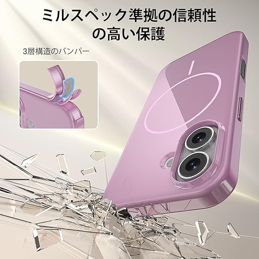 【MagSafe対応】軽く吸着し瞬時的にしっかりとフィットします。ワイヤレス充電や車載ホルダーなど、MagSafeに関するアクセサリーと簡単に互換性があります。あらゆる振動に耐え、簡単に外れることのない強力で安定した吸着力を提供します。対応機種:いphone16 ケース