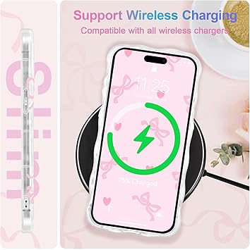 【対応 iPhone 16 用の ケース】 ご購入前に、お使いの携帯電話の正しいモデル/サイズ選択してください。当社のスマホケースの品質に問題がある場合は、お気軽に当社のカスタマーサービスにご連絡ください。UEEBAIスマホケース16かわいい蝶結びウェーブスマホケース & ソフトクリア TPUカバーは、ワイヤレス充電をサポートしています。