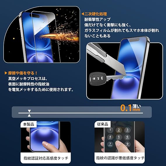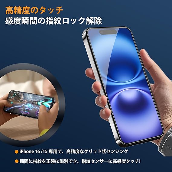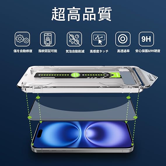 【対応機種】iphone16 フィルム 専用 ガラスフィルム 高透過率 (2枚入り)+ガイド枠付き(2枚入り)。iphone16 フィルムのために設計され、正確なサイズ、2.5 Dラウンドエッジ加工があり、この強化ガラス保護フィルムのカットは アイフォン16 スマホの画面に高度に合わせ、割れにくく、iphone16 スマホ本体にもよくフィットします。全方位の保護を提供します。