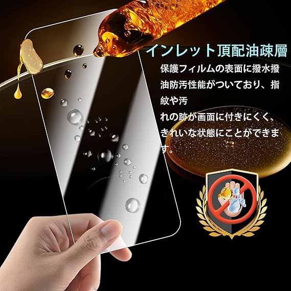 【旭硝子素材】:日本製旭硝子素材の採用、また硬度は業界最高レベルの9Hであり、カッタ一などの鋭利なものを当てたとしても損傷なく長らく使えます。気泡に悩まされることなく、より簡単に、より綺麗に液晶保護フィルムを取り付けることができます。