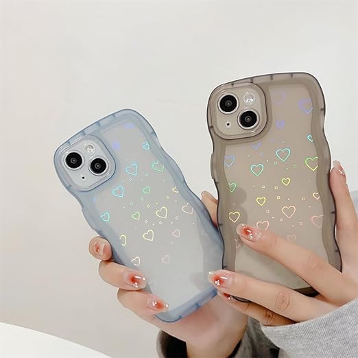 MuZiF iPhone 16 Plus 用 ケース 対応 クリア 可愛い [グリッターカード&ハート形] ウェーブ TPUソフトケース 透明 かわいい 韓国 薄くて軽い 人気 おしゃれ ストラップ穴あり 耐衝撃 保護カバー 16 Plus 用 スマホケース (iPhone 16 Plus 用,ブルー) a