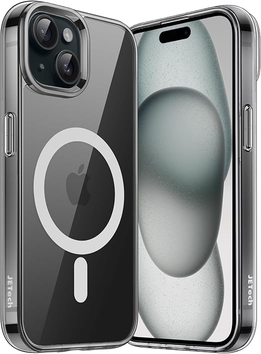 JETech iPhone 15 6.1インチ用 マグネット ケース MagSafe ワイヤレス充電対応 衝撃吸収 バンパーカバー 傷つけ防止 透明バック (ブラック/ホワイト) a