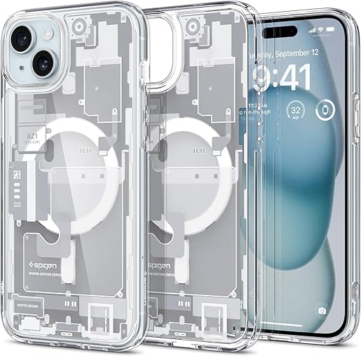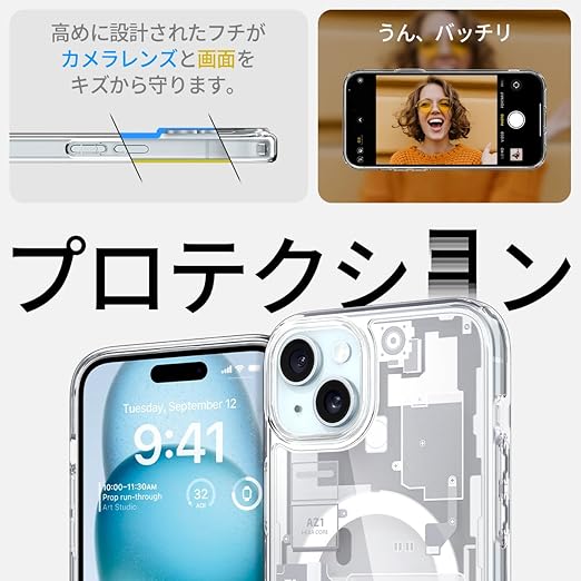 Spigen 【創業18年の技術力】 iPhone 15 ケース MagSafe クリア 耐衝撃 米軍MIL規格取得 ストラップホール 黄変抑制 透明 ストラップホール 2重構造 レンズ保護 擦り傷防止 MagSafe ワイヤレス充電対応 ウルトラ・ハイブリッド マグフィット ACS06806 (ゼロ・ワン・ホワイト) a