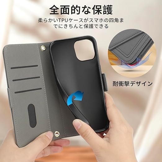 【対応機種】iPhone15。あいふぉん15ケース手帳型は、モデルやカラーが豊富です。クロスハッチの独特な質感、封筒のようなユニークな文字デザイン、質感のあるゴールドのメタルアクセサリーなど、スタイリッシュでシンプルなデザインに仕上げています。 また、メイクアップミラーも付いているので、外出先でもメイクアップを確認でき、毎日の生活がより快適になります。ご注文の際は、対応機種と画面サイズをご確認の上、ご注文ください。