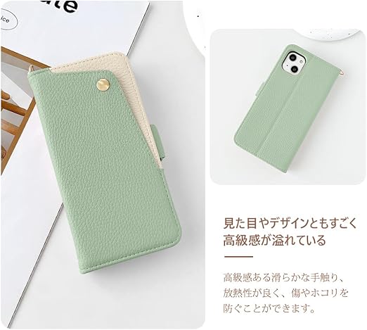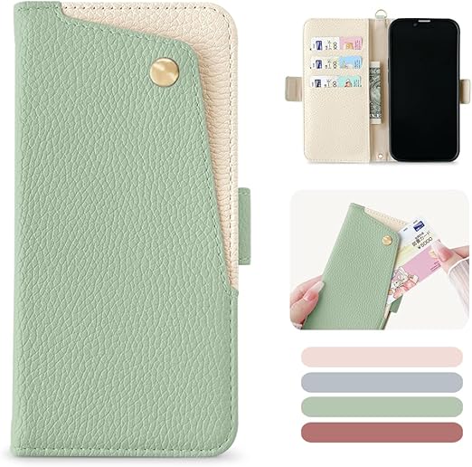 MAGICASE for いphone15 ケース 手帳型 可愛い iPhone15 ケース 手帳型 おしゃれ アイフォン 15 ケース 手帳型 軽量 耐衝撃 マグネット式 スマホケース iphone15 財布型 シンプル カード収納 スタンド機能 携帯ケース iphone 15 高級PUレザー 擦り傷防止 iphone15 カバー 全面保護 耐汚れ 防塵 人気 女性 6.1インチ対応(グリーン) a