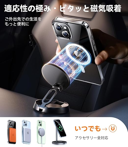 【超強力マグネット配列・業界に革命を】強力なハルバッハ磁石配列を搭載、磁力の魔法を体験しよう!吸引力が急上昇することで、瞬時にピタッと吸い付く安定感、何回振っても落ちない!ワイヤレス充電だけでなく、さまざまなMagsafeアクセサリーにも対応できます。使いやすさとエレガンスを共に、iPhone15 ケースで最高のスマートフォンライフを手に入れましょう!対応機種:iPhone 15用