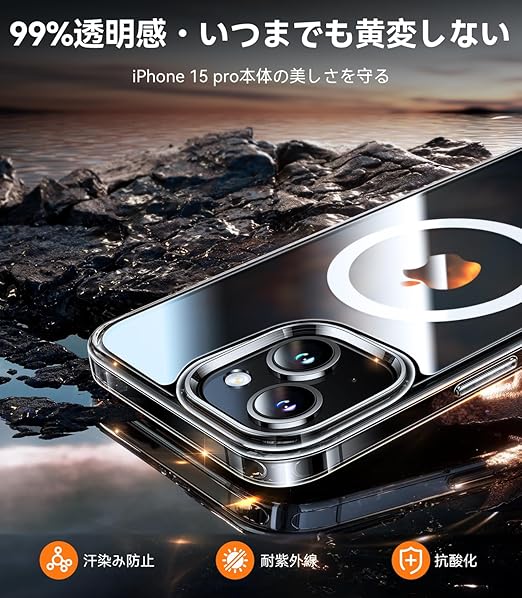 【極限耐黄変!Magsafe対応】TORRAS iPhone 15 用 ケース クリア マグネット搭載 黄ばみなし ワイヤレス充電 耐衝撃 全面保護 あいふぉん15ケース 透明 a