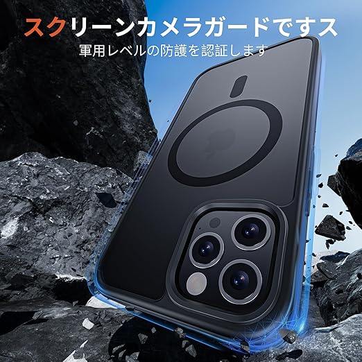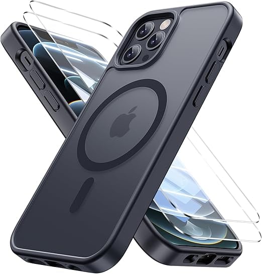 Bruzaio iPhone 12/ iPhone 12 Pro 用 ケース【強化フィルム2枚付き】Magsafe対応・米軍規格 いphone12 ケース 半透明 耐衝撃 指紋防止 滑り止め マグネット搭載 ワイヤレス充電 耐久性 全面保護 黄ばみなし ストラップホール付き 12/12 Proスマホケース 6.1インチ用,ブラック a
