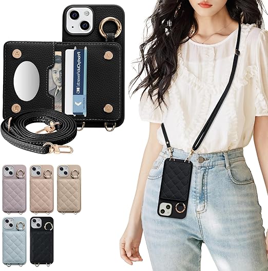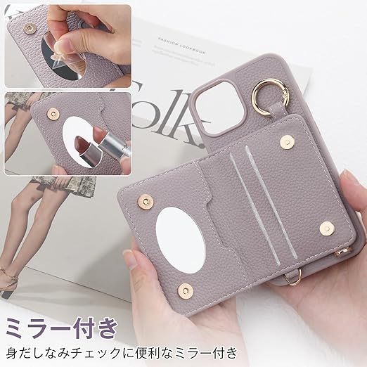 [TNScart]Iphone 15クロスボディ手帳型フォンケースス 高級PUレザー 財布型 スタンド機能 い 人気 カード収納 横置き おしゃれ 上質な手触り 擦り傷防止 ケース 斜めかけ ストお財布付 ポケット付き 鏡付き c