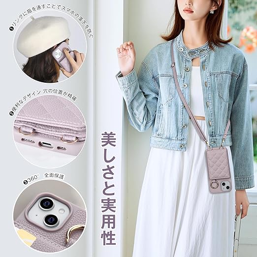 [TNScart]Iphone 15クロスボディ手帳型フォンケースス 高級PUレザー 財布型 スタンド機能 い 人気 カード収納 横置き おしゃれ 上質な手触り 擦り傷防止 ケース 斜めかけ ストお財布付 ポケット付き 鏡付き d