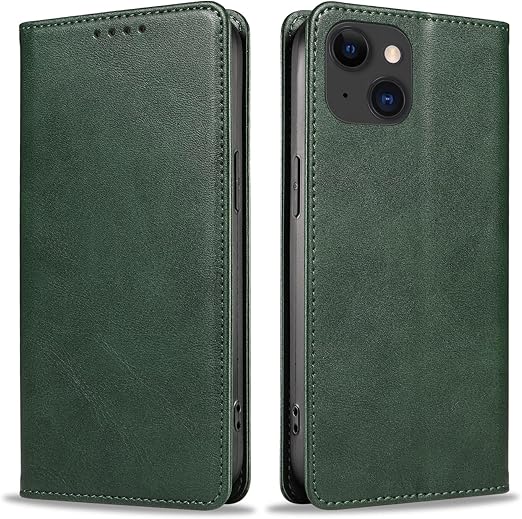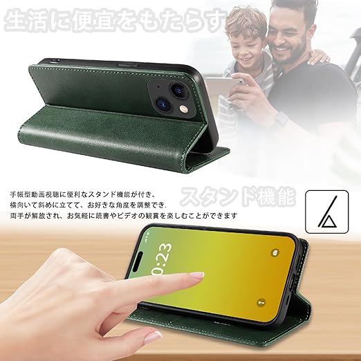 PinLiSheng iPhone15 ケース 手帳型 本革 スマホケース 携帯カバー 財布型 レザー 軽量 薄型 アイフォン 15 手帳ケース 耐衝撃 耐摩擦 マグネット式 カード収納 スタンド機能(iPhone15, グリーン) a