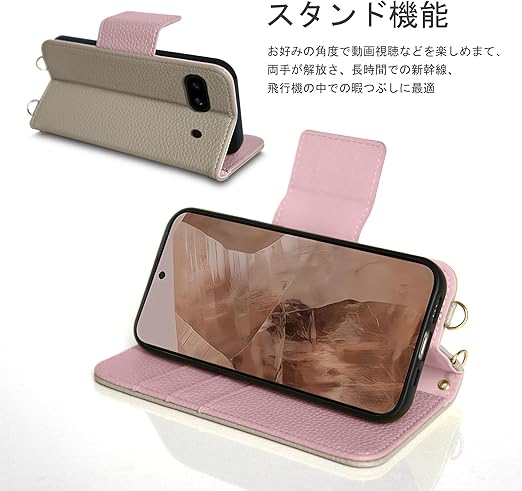 【カード収納&横置きスタンド】手帳型ケース、内側に実用性のカード入れポケット×3、内側ポケット×1、カード類、現金、名刺、免許証入れなどを収納でき、通勤も通学にも楽々タイプです。水平ブラケット機能が付いて