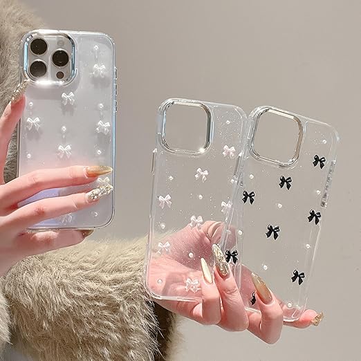 【3D ミニリボン デザイン 】背面はシルバーの小さなリボンと、埋め込まれている目を引くグリッターが剥がれ落ちたりしなく、可愛い、流行りの韓国デザインです!カメラ周りのシルバーフレームは、取り外し可能なデザインとなっております、お好みに合わせて、シルバーフレームの有無ご利用くださいませ。