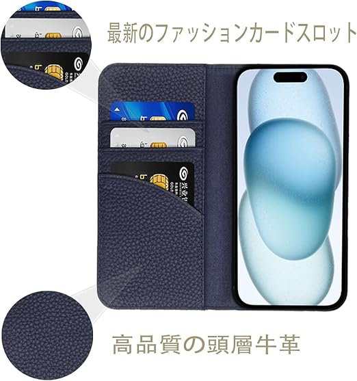 iPhone 15 ケース 本革 手帳型 カバー 耐衝撃 保護 カバー 本革 内蔵マグネッ RFIDト 財布型 携帯カバー カードポケット スタンド機能 NanHou - ロイヤルブルー a