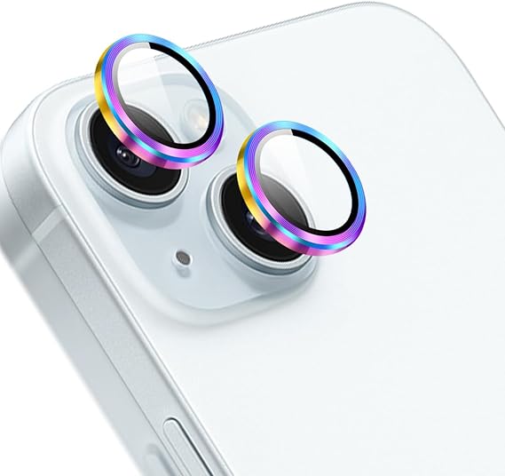 【2枚セット】 対応 iPhone 15 / iPhone 15 Plus カメラフィルム 保護カバー (2枚) アルミ合金製+AR高透過率強化ガラス レンズ全面保護 対応 アイフォン15 / アイフォン15Plus レンズフィルム 強化カメラ保護フィルム 黒縁取り 露出オーバー防止 高透過率、硬度9H、スクラッチ防止、飛散防止、指紋・汚れ防止、気泡ゼロ(カラフル)【FAMROLLS正規品】 a