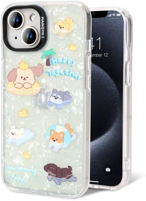 Mainoyo 対応 アイフォン ケース iphone 用 ケース カバー レーザー かわいい おしゃれ 綺麗 キラキラ アニメ 可愛い スマホケース (いぬ A, iphone 15) a