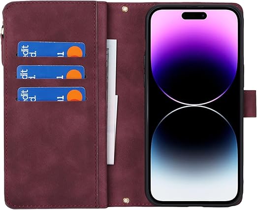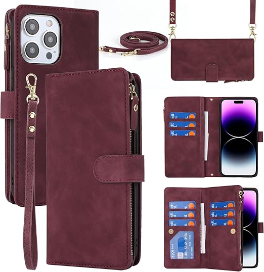 Pelanty for iPhone 15 Pro Max 縄掛けケース 手帳型ケース 携帯カバー 肩掛け首かけ斜めがけ ショルダー 合成皮革+TPUケース 内蔵マグネット iPhone 15pro max 財布型カバー ICカードポケット お札入れ小銭入れ 大容量 収納ポケット きスタンド機能 アイフォン15 pro max ストラップ付き 落下防止 耐衝撃(肩縄付き-ワインレッド) a