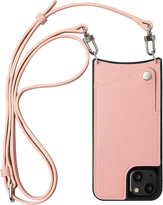 本革 スマホケース iPhone 15 Pro Max 互換性 対応ケース スマホショルダー ショルダーケース カード収納 ロングストラップ (ピンク) a