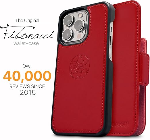 Dreem フィボナッチ(Fibonacci)2イン1 財布型ケース Apple iPhone 15 Plus用 - 高級ヴィーガンレザー製 マグネット着脱式 耐衝撃 携帯電話ケース RFIDカード保護機能 2通りに使えるフリップスタンド付き - [レッド] a
