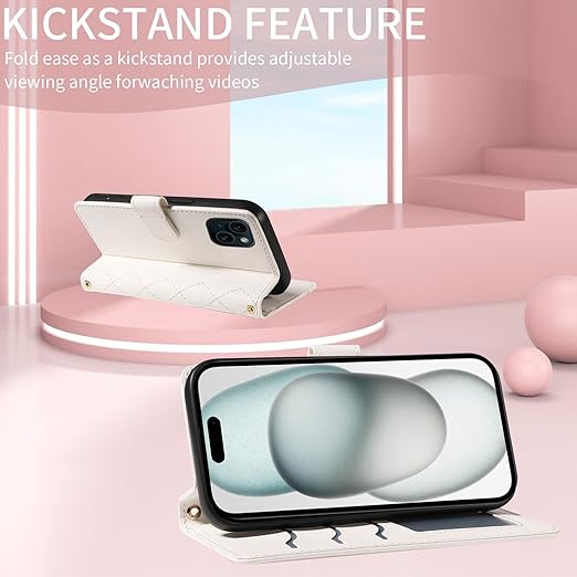 iPhone 15 用 ケース 手帳型 アイフォン15 ケース ショルダー 対応 iPhone 15 スマホケース 肩掛け いphone15 ケース 財布型 カード収納 横置き機能 耐衝撃 携帯カバー ストラップ付き(パールホワイト) a