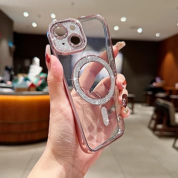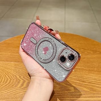 Lafunda iPhone 15用 ケース Magsafe対応 キラキラ 可愛い 女の子 人気 ブリンブリン フォンカバー スパークリング ハート 透明 メッキ加工 カメラ保護 耐衝撃 軽薄型 磁気スマホケース アイホン 15 用携帯 ピンク a