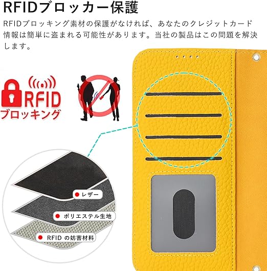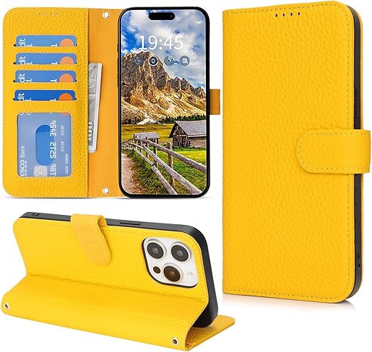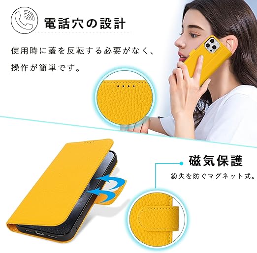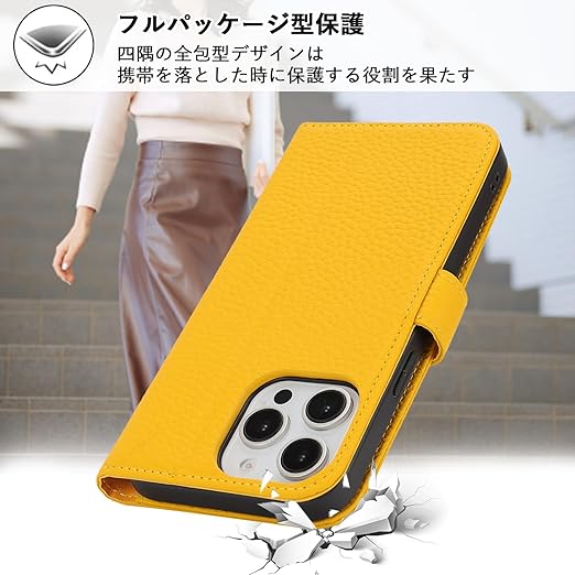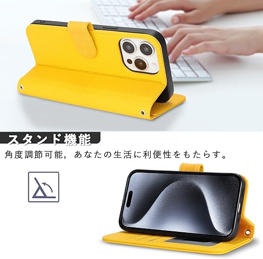 DEYHU 対応 いphone15pro ケース 手帳型 カード収納 スタンド機能 iphone15pro ケース 本革 大容量 財布型 耐衝撃 iphone 15 pro ケース 手帳型 iphone15プロ レザー カバー ゴールドイエロー a