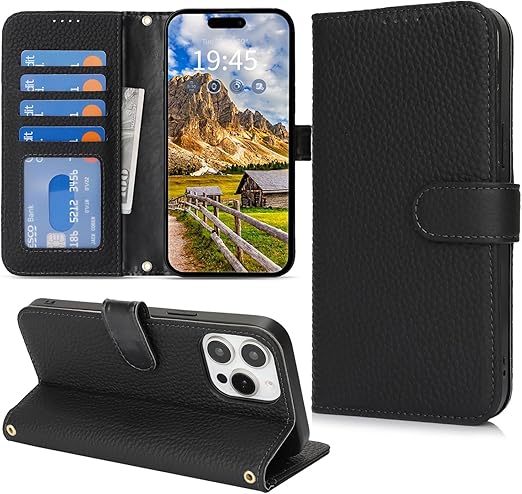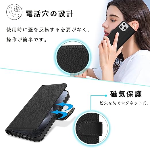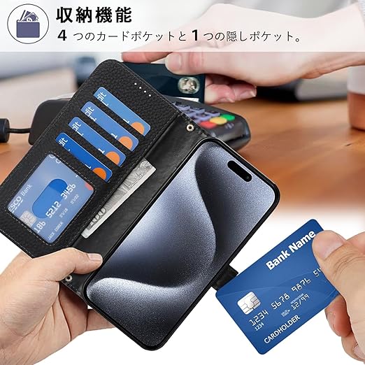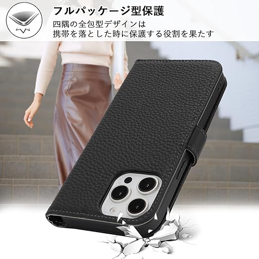 DEYHU 対応 いphone15pro ケース 手帳型 カード収納 スタンド機能 iphone15pro ケース 本革 大容量 財布型 耐衝撃 iphone 15 pro ケース 手帳型 iphone15プロ レザー カバー ブラック a