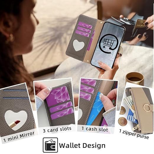 【内部カード収納機能とミラー】iphone15プロケース フリップフォンケースには、3つのクレジットカードスロットと側面に大きなポケットがあり、駐車券、名刺、銀行カードを収納できます、小銭など、外出時に余分な財布を持ち歩く必要はありません! iphone15proケース の内側には楕円形のメイクアップミラーも付いており、いつでもメイク直しやドレスアップが簡単に行えます。 毎日の通勤を