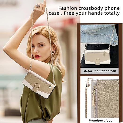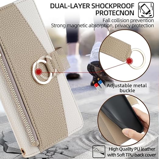 いphone15pro ケース アイフォン15 ケースプロ ショルダー ストラップ付き iphone 15 pro ケース スタンド機能 カード収納 ミラー付き 耐衝撃 肩掛け スマホケース iphone 15 pro 手帳型 おしゃれ 女性 柔らかいTPU TOO&SOO アイフォン15pro ケース 斜め掛け 適応 6.1 インチ - オフホワイト a