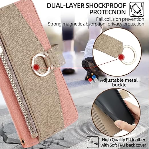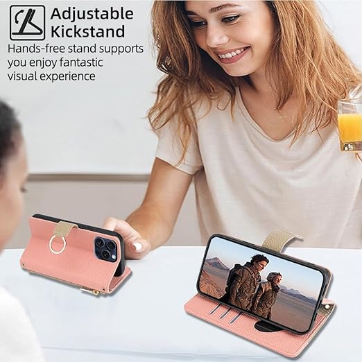 いphone15pro ケース アイフォン15 ケースプロ ショルダー ストラップ付き iphone 15 pro ケース スタンド機能 カード収納 ミラー付き 耐衝撃 肩掛け スマホケース iphone 15 pro 手帳型 おしゃれ 女性 柔らかいTPU TOO&SOO アイフォン15pro ケース 斜め掛け 適応 6.1 インチ - ピンク a