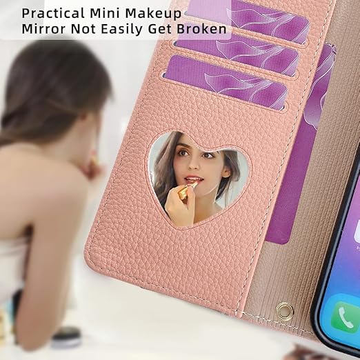 【内部カード収納機能とミラー】iphone15プロケース フリップフォンケースには、3つのクレジットカードスロットと側面に大きなポケットがあり、駐車券、名刺、銀行カードを収納できます、小銭など、外出時に余分な財布を持ち歩く必要はありません! iphone15proケース の内側には楕円形のメイクアップミラーも付いており、いつでもメイク直しやドレスアップが簡単に行えます。 毎日の通勤を