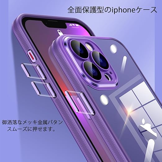 【対応機種と素材】iPhone 15 ProMax対応 サイズ:6.7インチ対応、ケース本体:約縦16.5×横8.8×厚1.1 cm 主素材:シリコーンサイド、超透明アクリル背面プレート、メッキ金属ボタンとカメラアクセサリーリング、H9強い硬度ガラスレンズ保護フィルム、ステンレススピーカー防塵ネット、iphoneをしっかり守ります。