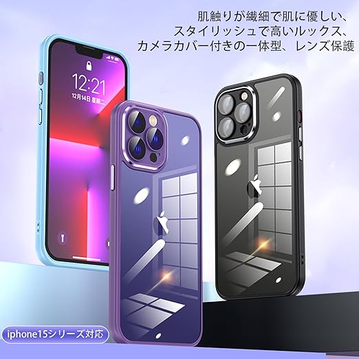 Donocao iPhone15proMaxケースアイホン15プロマックスケース 透明 シリコン 薄型 クリアアクリル背面プレート フィット 滑り止め カメラカバー付き レンズ保護 黄変防止 指紋防止 衝撃吸収 かわいい 御洒落 ディープパープル a