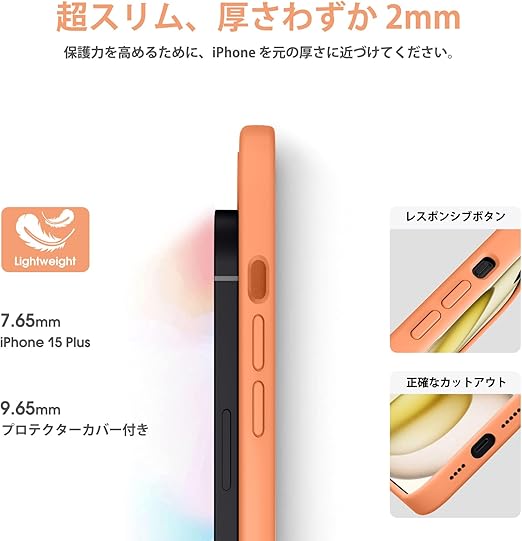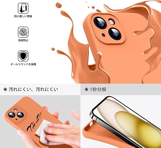 Supdeal iPhone 15 Plus ケース 対応液体シリコン [耐衝撃] [柔軟TPU液体シリコン] [ソフトタッチ] [レンズの全面保護] [指紋防止] [落下防止] [滑り防止] 軽量 4層保護 アイフォン 15 Plus スマホカバー 6.7インチ(オレンジ) a