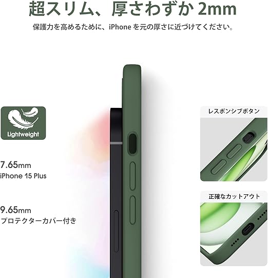 Supdeal iPhone 15 Plus ケース 対応液体シリコン [耐衝撃] [柔軟TPU液体シリコン] [ソフトタッチ] [レンズの全面保護] [指紋防止] [落下防止] [滑り防止] 軽量 4層保護 アイフォン 15 Plus スマホカバー 6.7インチ(グリーン) a