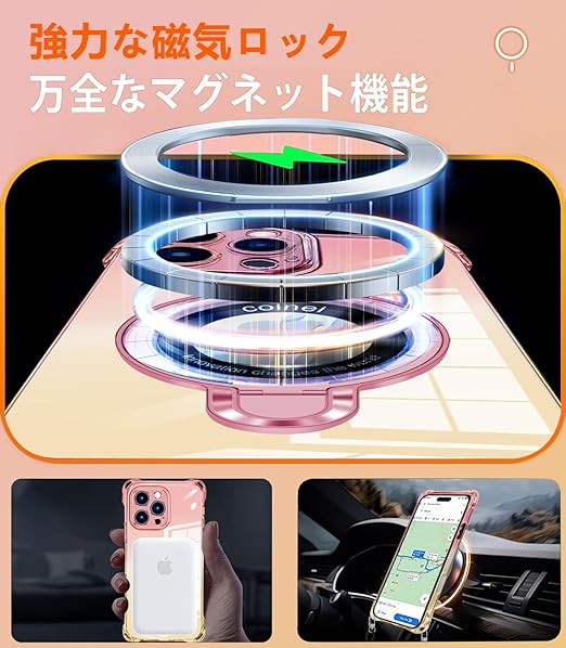 【Magsafeなら強力な磁力 】iPhone14/iPhone 13 用ケースの内部に 配列永久磁石を内蔵したことで、吸着力を高めて、安定感をアップしてエネ損失なしの快速ワイヤレス充電できる。MagSafe車載ホルダーでの使用時もとても安心感溢れ、様々なMagSafe用のアクセサリーと相性バッチリ!