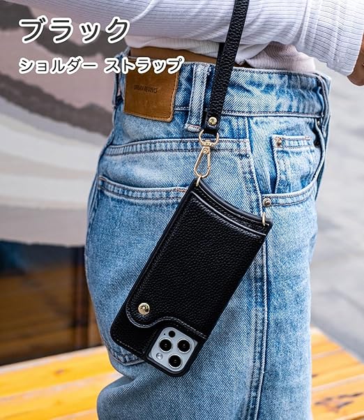 LIISEA いphone14 ケース 手帳型 iphone14 ケース 可愛い いphone14 ケース ショルダー 耐衝撃 アイフォン14 ケース 手帳型 スマホケース iphone 14 ケース 手帳型 いphone14 ケース リング アイホン14ケース ショルダー iphoneケース ストラップ付き カード収納 スタンド おしゃれ 可愛い 肩掛け 斜めかけ ミラー付き 薄型 ブラック a