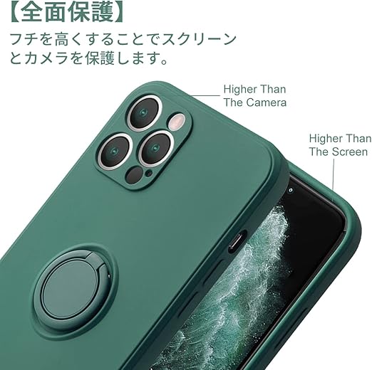 適用 iphone 14 ケース リング付き シリコン iPhone14 カバー ストラップ リング アイフォン 14 リングケース アイフォン14 リング付きケース シリコーン アイフォン14 シリコンカバー いphone14 スマホケース iphone14 case 【GoKIGIoD】 バンパーケース ストラップホール ハンドストラップ 携帯カバー グリーン a